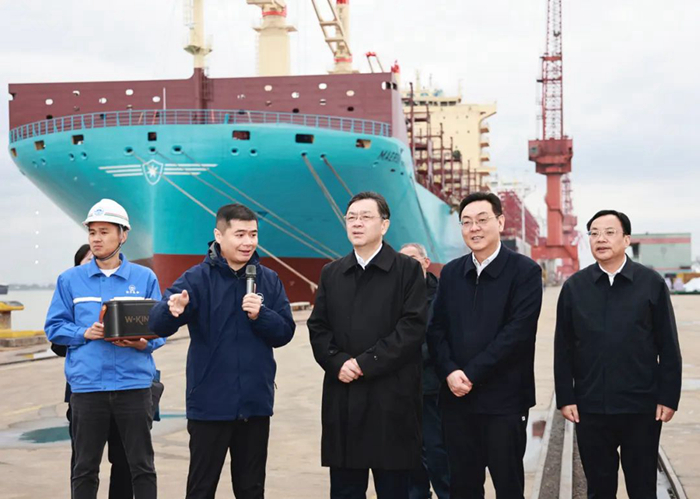 今年以來,我集團生產(chǎn)經(jīng)營保持強勁勢頭,新造船完工量、新接船舶訂單量、手持船舶訂單量三大指標位居全國前列。委員們走進公司生產(chǎn)一線,在1號碼頭察看了正在舾裝的LNG雙燃料清潔能源船等,繁忙的船舶建造場景給委員們留下了深刻印象。在隨后召開的座談會上,委員們聽取了我國船舶行業(yè)發(fā)展現(xiàn)狀,集團董事長任樂天作了揚子江船業(yè)集團經(jīng)營運行情況匯報。