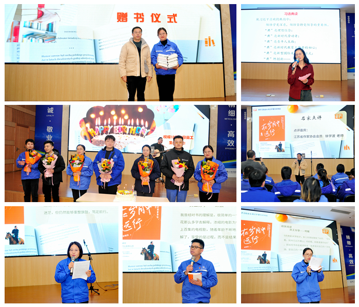 活動中,高級歷史老師、國家二級心理咨詢師姚北平帶領(lǐng)大家進(jìn)行了《心有大我 強(qiáng)企有我 至誠報(bào)國》為主題的“習(xí)語典讀”分享。來自集團(tuán)綜合管理部的多位員工,分享了近期閱讀《在歲月中遠(yuǎn)行》一書后,關(guān)于行走、關(guān)于閱讀和愛的意義,并結(jié)合生活、工作實(shí)際暢談收獲感悟。江蘇省作家協(xié)會會員徐學(xué)波老師代表市委宣傳部,向我司捐贈一批圖書,助力企業(yè)充實(shí)職工書屋、推廣閱讀角等陣地建設(shè),更好地搭建閱讀交流平臺。結(jié)合大家的讀書分享,徐老師還作了延伸點(diǎn)評。