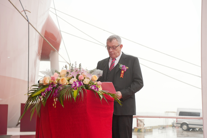 教母中信銀行蘇州分行副行長倪衛(wèi)芳女士,HARTMANN董事會(huì)執(zhí)行總監(jiān)Ulrich Adami先生、董事會(huì)商務(wù)總監(jiān)Jan-Lars Kruse先生、新造船經(jīng)理Ionut Cornea先生、大中華區(qū)區(qū)域經(jīng)理龍葉飛先生,DNV船級(jí)社江陰站經(jīng)理史勇林先生,中信銀行太倉分行行長顧衛(wèi)先生,三井物產(chǎn)上海井上伸一先生、住田直也先生、田野先生,揚(yáng)子江船業(yè)集團(tuán)副總經(jīng)理丁建文先生,集團(tuán)副總經(jīng)理兼揚(yáng)子三井總經(jīng)理宋書明先生,揚(yáng)子三井CFO石丸雄次先生、COO田村光路先生、副總經(jīng)理陳國強(qiáng)先生及總經(jīng)理助理中尾慎一先生以及各合作方、員工等代表參加了命名交船儀式。