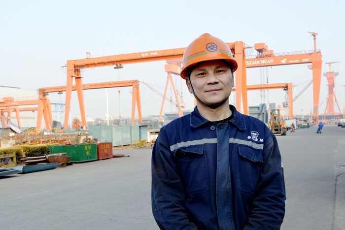 裝配、電焊、起重、板筋……集多項技能于一身,在新?lián)P子造船的管舾集配車間,我們見到了在A區(qū)東跨忙碌的蔣志剛,今年42歲的他,日前被國務院農(nóng)民工工作領導小組授予“全國優(yōu)秀農(nóng)民工”榮譽稱號,成為了農(nóng)民工學習的榜樣。