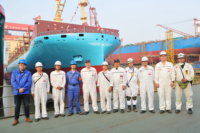 The 3500TEU container ship "MAERSK BISCAYNE" built by New Yangzi for LEPTA was delivered and left the factory