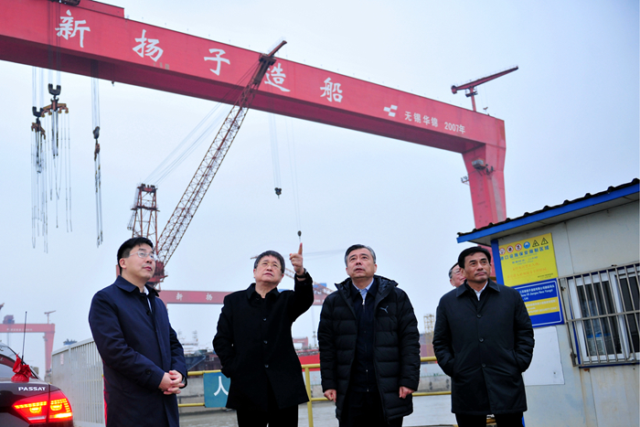 元月6日下午,江蘇省政協(xié)副主席、黨組副書記閻立帶領(lǐng)省工業(yè)和信息化廳、江蘇省船舶工業(yè)行業(yè)協(xié)會、江蘇科技大學(xué)等單位組成的高技術(shù)船舶產(chǎn)業(yè)鏈工作專班蒞臨我集團(tuán),開展以“對全省高技術(shù)船舶產(chǎn)業(yè)鏈進(jìn)行調(diào)研,摸清產(chǎn)業(yè)鏈相關(guān)情況 ”主題調(diào)研考察。省工信廳民爆船舶處處長程夢瑋,江蘇省船舶工業(yè)行業(yè)協(xié)會秘書長、教授蔣志勇,江蘇科技大學(xué)教授姚震球等陪同調(diào)研。泰州市人民政府副市長張育林,泰州市政協(xié)副主席陸曉聲,靖江市委副書記、市長陳鋒劍,靖江市政協(xié)主席范敏以及泰州、靖江工信局相關(guān)負(fù)責(zé)人等參加調(diào)研。我集團(tuán)名譽(yù)董事長任元林,集團(tuán)副總經(jīng)理張宏飛、杜成忠、周科偉等熱情接待了閻主席一行。