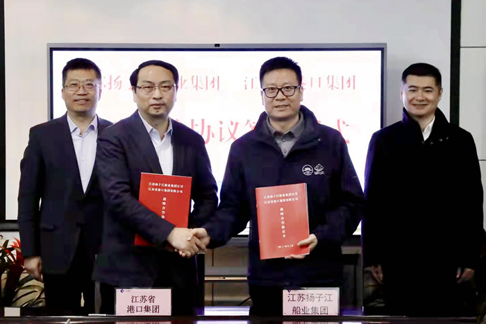 12月21日,揚(yáng)子江船業(yè)集團(tuán)與江蘇省港口集團(tuán)有限公司戰(zhàn)略合作協(xié)議簽訂儀式在南京下關(guān)大廈舉行。江蘇省港口集團(tuán)有限公司副總經(jīng)理譚瑞兵先生,我集團(tuán)副董事長(zhǎng)張宏飛先生代表雙方簽署了戰(zhàn)略合作協(xié)議。江蘇省港口集團(tuán)黨委副書(shū)記、總經(jīng)理關(guān)永健先生,我集團(tuán)董事長(zhǎng)兼總經(jīng)理任樂(lè)天先生,江蘇蘇港航務(wù)工程有限公司執(zhí)行董事金志忠先生等嘉賓共同見(jiàn)證。