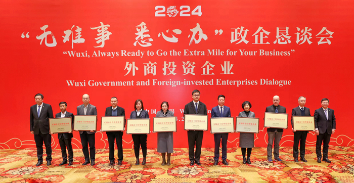 為廣泛聽取企業(yè)意見建議,持續(xù)打響“無難事 悉心辦”優(yōu)化營商環(huán)境品牌,2月23日,無錫市政府邀請近30家在錫重點外資企業(yè)代表召開懇談會,面對面傾聽企業(yè)訴求和對政府工作意見建議,并為“無錫市十佳外資企業(yè)”頒獎。我司榮獲該項殊榮,集團黨委書記張宏飛代表企業(yè)參加會議并交流發(fā)言。