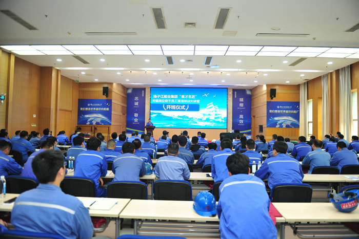 4月23日下午,揚子江船業(yè)集團“英才名匠”關(guān)鍵崗位骨干員工管理培訓(xùn)大講堂開班儀式在集團多功能廳舉行。集團副總經(jīng)理兼集團技術(shù)中心主任周科偉,江蘇科技大學(xué)繼續(xù)教育學(xué)院培訓(xùn)事業(yè)部主任陳牮華,揚子鑫??偨?jīng)理助理劉銀君,集團技術(shù)中心新?lián)P子技術(shù)部部長蔣才平,新?lián)P子生產(chǎn)管理部部長洪杰,新?lián)P子質(zhì)量管理部部長唐松,集團培訓(xùn)中心主任兼集團(新?lián)P子)人力資源科科長顧鵬程,以及從造船集團各子公司遴選的110余位骨干學(xué)員參加開班儀式。