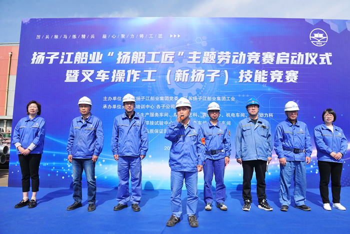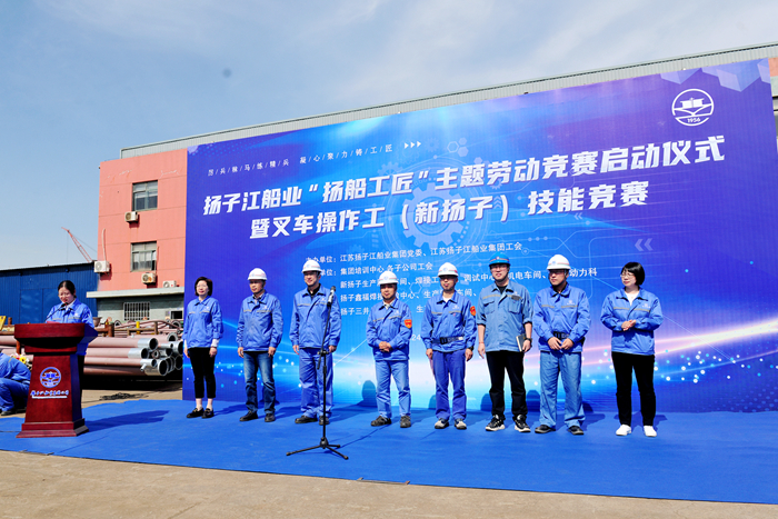 4月24日,揚(yáng)子江船業(yè)“揚(yáng)船工匠”主題勞動競賽啟動儀式暨叉車操作工(新?lián)P子)技能競賽在新?lián)P子造船舉行。集團(tuán)副總經(jīng)理兼新?lián)P子造船總經(jīng)理杜成忠,新?lián)P子造船副總經(jīng)理倪榮,新?lián)P子造船總經(jīng)理助理茆宏兆,揚(yáng)子鑫福造船總經(jīng)理助理劉銀君,集團(tuán)技術(shù)中心技術(shù)部部長蔣才平,新?lián)P子質(zhì)量管理部部長唐松,揚(yáng)子鑫福造船工會主席陳紅,揚(yáng)子三井造船工會主席司凌鈺,以及各造船子公司相關(guān)承辦車間部門領(lǐng)導(dǎo)、參賽職工代表和裁判員代表等參加啟動儀式。