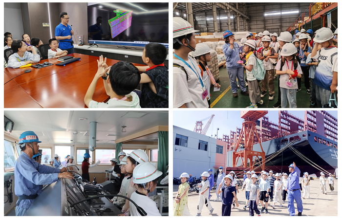 最讓孩子們興奮的是登船參觀環(huán)節(jié)。踏上甲板,孩子們好奇地四處打量,駕駛室、船員生活區(qū)、集控室……每一個(gè)區(qū)域都吸引著他們的目光。在駕控臺(tái)前,手掌著舵,推著車鐘,孩子們仿佛自己也變成了一名操縱萬(wàn)噸巨輪的船長(zhǎng),心中充滿了激動(dòng)與自豪。