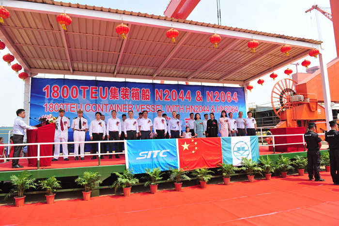 On the morning ofAugust 29th, NYZ held a grand christening ceremony for two 1800TEU containerships built for SITC.