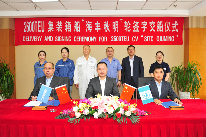 On the same day,Mr. Li Ruimin, General Manager of SITC Shanghai Management Center, Mr. Du Chengzhong and Mr. Zhang Tao, Deputy General Manager of our group signed the delivery documents of M/V SITC QIUMING on behalf of each party.